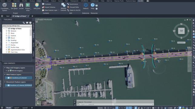 ArcGIS for AutoCAD garantiza que los dibujos CAD y los diseños Civil 3D estén listos para su uso en productos y aplicaciones básicos de ArcGIS. Los usuarios de CAD pueden importar y editar datos SIG para preparar dibujos listos para ArcGIS para su presentación, al tiempo que cumplen con los estándares CAD sin necesidad de tener conocimientos especializados en SIG.