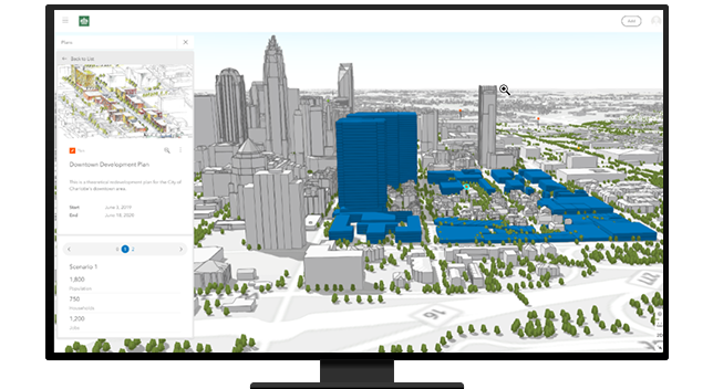 ArcGIS es una solución de planificación integral, completa con herramientas avanzadas y flujos de trabajo prediseñados. Cree, importe y edite planos en 3D y, a continuación, publique los resultados para obtener comentarios de las partes interesadas, todo en ArcGIS.
