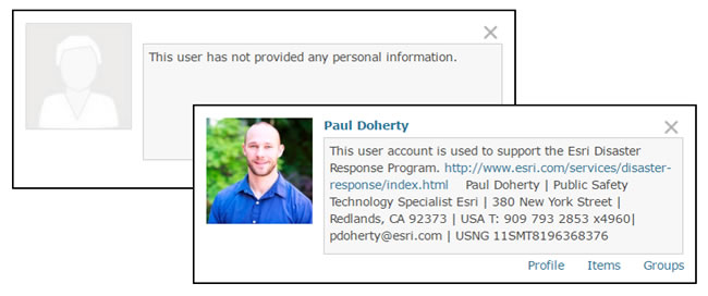 Why compose and post a detailed profile of yourself? Which profile below inspires the most confidence? Whose maps, apps, and layers will you most likely use or trust?