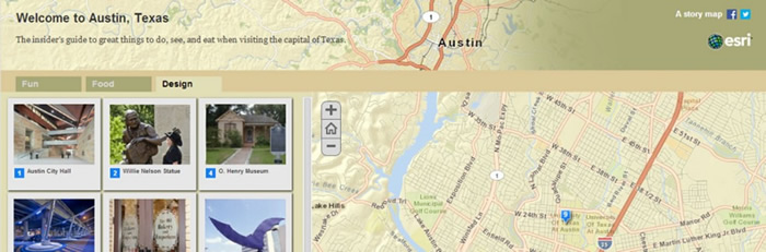 By following the approach used in the previous steps in which you identify elements you want to change and then make those changes to your custom.css file using the id or class, you can continue to tweak your application’s look and feel. The result? Your Shortlist story map will stand out. The Shortlist app in this example has additional customizations for the tab colors, thumbnail background, and header divider: