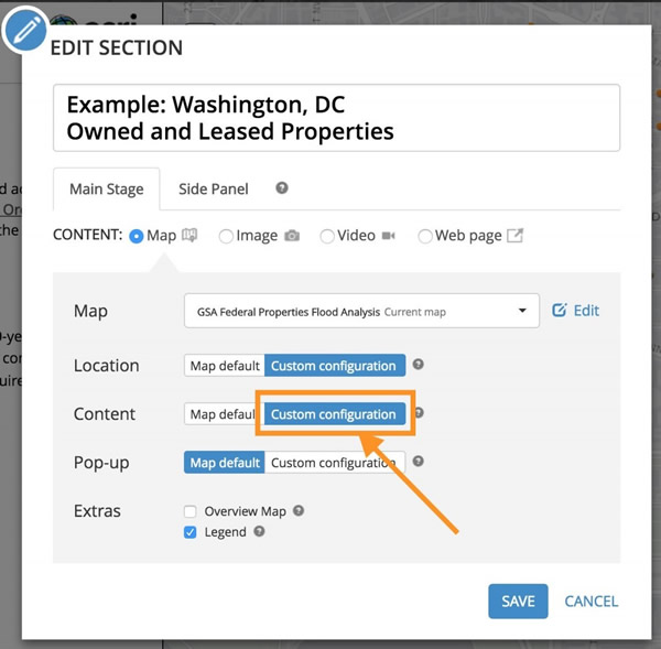 Second, using fewer web maps also helps your app perform better and provides your audience with an improved user experience. Each web map you load into the app consumes memory and other browser resources. So the more web maps you use, the more memory your app will consume. By creating a single web map with multiple layers and using a custom configuration for each section and/or main stage actions to toggle layers, you can improve the app’s performance.