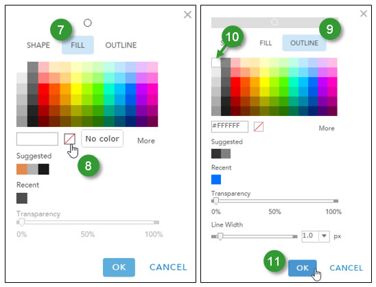 Step 10. Choose white for the outline. Adjust the line width to 1 pixel.