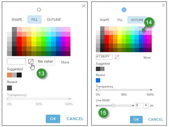 Step 14. Click OUTLINE and select a color for the outline other than white Try a medium blue, for example, as it offers a nice contrast.
