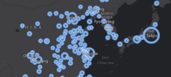 Once you have decided on the initial form of your features—for example, selecting either circles or colors to show population—you can to change their appearance, such as choosing colors, line weights, and transparency. You can create interesting effects by duplicating layers and applying different styles to each layer. In the tip below, you will learn how to create a glowing double ring effect.