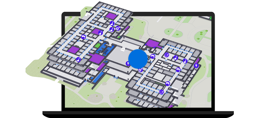 Les cartes numériques des installations permettent d’afficher des informations opérationnelles telles que l’état des ressources, les demandes de service et la position du personnel dans une vue partagée. Collectez, gérez et analysez des données indoor pour obtenir une vue opérationnelle complète de vos installations et offrir des informations exploitables.