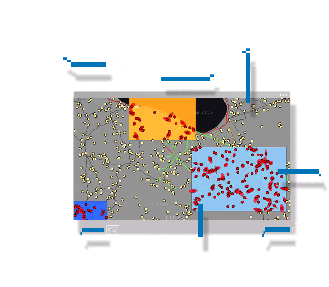ArcGIS è una tecnologia estensibile basata sui servizi che si integra nei sistemi di missioni Gli sviluppatori e gli integratori si basano su ArcGIS per fornire un'infrastruttura geospaziale per operazioni di difesa sicure.