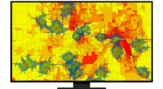 Esri のロケーションベースのソフトウェアにより、主要な市場パフォーマンス指標の可視性を向上させます。 保険請求ステータスを追跡し、部署戦略のほぼリアルタイムの効果評価に役立つダイナミック アプリケーションによって、保険請求チームを支援します。