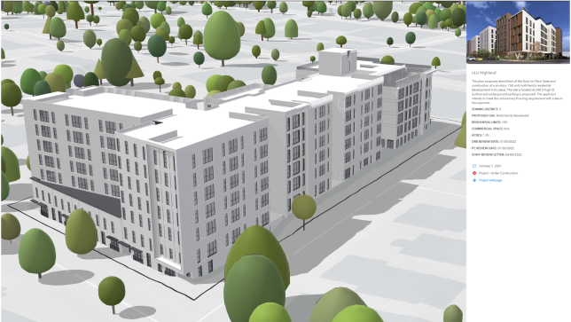 도시 전반의 개발 상태를 추적 및 시각화하여 제안된 프로젝트가 커뮤니티의 목표 도달에 얼마나 도움이 되는지 관찰할 수 있습니다. 이해관계자가 예정된 시공 활동과 진행 중인 시공 활동의 상황을 명확하게 이해할 수 있습니다. 다음 블로그에서 펜실베이니아 주립 대학교의 계획자가 어떻게 디지털 트윈을 적용하여 고급 아파트의 영향을 시각화하는지 알아보세요.