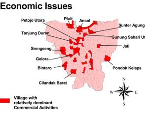 Three Possible Scenarios SurfaceThe May 1998 Riot in Jakarta, Indonesia, Analyzed with GISBy Prof. Dadan Umar Daihani, DEA, Director of Trisakti Research Institute, and Agus Budi Purnomo, Ph.D., Ms.C., Head of Trisakti Urban Research CenterIn May 1998 there was a riot in Jakarta, Indonesia, in which about 1,500 people died and 4,000 buildings were damaged, burned, or totally destroyed. The riot began in the Right: The damage to buildings during the May 1998 riot was concentrated in villages with dominant commercial activity. What was the cause of this riot? Historical ContextIndonesia is a country with multivarious races, cultures, religions, and languages. In the last millennium, the peoples of the archipelago were brought into a union three times. In the twelfth century the archipelago was united under the Sriwijaya Kingdom, then under the Majapahit in the fourteenth century, and finally in the twentieth century under the Republic of Indonesia. Even before the Dutch colonial era, the petty kingdoms were hostile to each other. It is not surprising, therefore, to see a history of upheaval, riot, and violence that marks Indonesia's dynamic of multicultural interaction. In the modern era, despite Indonesia being long touted for its sound macroeconomic management and spectacular growth, the Asian financial crisis in 1997/1998 revealed the weak underpinnings of its economy. By the end of 1997, the monetary crisis in Indonesia was in full swing. Large-scale forced unemployment had left many people uprooted from their sources of livelihood. In the same year, the crisis had caused the liquidation of 16 large private banks. As a result many peoples' savings were lost. The forced unemployment and financial bankruptcy had drastically decreased the living conditions in Indonesia. In addition, there were untenable levels of private foreign debt and noncompetitive practices that favored the financial interests of President Suharto's family and friends. This economic hardship and popular resentment of the government inevitably brought Indonesia into turmoil. The country saw student demonstrations and public unrest as well as the widespread rioting under discussion. At the time, government authorities agreed that the May riot was a serious tragedy for the nation but stopped short at explaining why the riot had happened. Shedding Light with GISIn an effort to understand the causes of such a national tragedy, a week afterward a team of surveyors from the University of Trisakti Research Institute was dispatched around Jakarta. Their main task was to note all of the consequences of the riot. Above left: From the spatiotemporal aspect, a pattern emerges that shows the initial points of violence distributed in a wide area with similar start times. The information was then organized and mapped as points into an ArcView GIS map. To see the connection of the riot to ethnic, economic, and political aspects, the point map was then superimposed with polygon data from the Indonesian Bureau of Statistics (BPS) that included such data as the distribution of Islamic and Buddhist populations and the commercial activities in villages. Since the BPS had no data directly concerned with ethnicity, it was decided that the religious data could be used as a proxy for ethnicity. Fortunately, in Indonesia there is a correlation between ethnicity and religion. In addition, since the unit areas between the riot data and demographic data were different, it was decided to aggregate the building data into a spatial unit that was used by the BPS. That spatial unit is the "village unit"--with an average area of 1.52 square kilometers. By using spatial correlation and segregation indexes, the data was mapped and correlated, revealing several interesting results that show a pattern of the riots. The indexes were calculated by using a simple Avenue script. From the data, the following observations can be introduced: