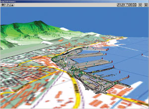 The Black Sea commercial port in Odessa, Ukraine, is a complex system that includes railways and multilevel automobile roads in addition to spatially intertwined underground surface networks and facilities. As the amount of data and documentation grew, analysts were having an increasingly difficult time managing the information, most of which had a cartographic component. Superior data quality was a necessity as it determined the efficiency of port authority decisions regarding port operation. The Odessa port saw the need for a GIS. Following a lengthy examination of possible GIS solutions, Esri distributor DATA+ (Moscow, Russia) was chosen to provide the Odessa port with the tools necessary to input and manage its complex set of data. The port GIS system, built using ArcGIS and the ArcGIS Spatial Analyst and ArcGIS 3D Analyst extensions, was created in stages and currently covers the port's entire territory. To ensure quality data, geodetic surveys were used to update the topographic basemaps. Data used for the project consisted of these digitized topographic maps (scale 1:500), technical documentation, geodetic survey results, and utilities' manhole data. With this information base, the GIS is able to provide dynamic query results regarding conditions, locations, and technical characteristics of buildings, structures, and engineering networks. The Odessa port is also able to perform spatial analysis of existing and planned engineering networks as well as to print maps at various scales automatically. The new system allows users to perform searches by object name, number, or coordinates or simply by clicking an object on the monitor. In addition, manholes now have hot links to added photos and videos. And a 3D representation of the port allows users to model automobile overpasses and overhead communications with regard to existing engineering networks. An object-oriented database includes information about objects within the engineering and communication networks as well as buildings in the port territory. Odessa's Black Sea port personnel are now able to perform analysis of depth data near quay walls and hydraulic structures, input depth data for surrounding waters and entrance passages, compare depth data against previous measurements, support data input alongside railroads, and present underwater and surface photos and videos of waterfront structures. The GIS system has proved very effective as an analysis and decision making tool in port infrastructure maintenance and development. It is fully compatible with the port's CAD system and provides high-quality paper maps. Taganrog (Russia)In the south Russian city of Taganrog, the Taganrog Bureau of Cadastre and Taganrog Sea Port Authority have worked together in the field of GIS for several years. Their projects included creating and maintaining routine inventory of port real estate using ArcView 3.2 and the ArcView Spatial Analyst and ArcView 3D Analyst extensions. These capabilities have allowed them to set up a digital model of the Taganrog bay floor, which allows port officials to monitor the entrance passages to the port. Such a wealth of accumulated spatial and attribute data has allowed the city of Taganrog to complete routine GIS tasks and illustrate complicated strategic planning solutions. One such solution was a response to seaport infrastructure changes called for by the Russian Federation Government Program for the Russian Transportation System Development. The program required switching export and import flows from Ukrainian ports to south Russian seaports and river ports. As a major port in the Sea of Azov, Taganrog was to play a significant role in these changes. However, the Taganrog seaport lacked facilities to accommodate the increased traffic and needed to be expanded. Obstacles to the expansion, such as an entrance passage that needed to be deepened, presented difficulties for various economic and ecological reasons. Also, the railway station nearest the port had only limited terminal capacity, and the port territory was squeezed between Taganrog's urban and recreational areas. For these reasons, Taganrog port authorities argued that moving the port to a new site outside city limits would be a viable option. The port's GIS capabilities were used to create an effective presentation to attract domestic and foreign investors to either the building of a new site or the expansion of the existing facility. Taganrog's Cadastre Bureau was given the task of illustrating both the advantages and disadvantages of each port development option. The client, Taganrog Sea Port Authority, requested that the presentation provide an interactive user interface, and support all major 3D scene manipulations as well as dynamic object querying. The GIS was used to support decision making and make a strategic choice between the two alternatives. The following are examples of digital maps presented to the Authority: