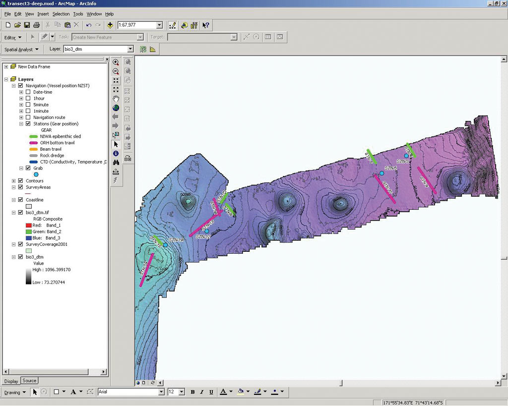 NIWA used ArcGIS Desktop (ArcInfo) with the ArcGIS Spatial Analyst and ArcGIS 3D Analyst with ArcScene extensions to enable people with no specialist GIS training or experience to produce extremely high-resolution images of the seafloor within minutes of surveying.