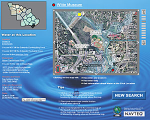 Stretching more than 150 miles from east to west and nearly 100 miles from north to south, the Edwards aquifer is a unique natural resource in south-central Texas, supplying water for agriculture, recreation, wildlife, and the daily needs of nearly two million residents Because this region's climate is semiarid (average yearly rainfall is 30 inches but varies widely from month to month), reliable access to water is critical for sustaining the communities that have grown up here, including San Antonio. Water quality and availability are a primary concern of organizations, such as the San Antonio River Authority (SARA), that have long been engaged in education, preservation, and protection efforts. Recently, the Edwards Aquifer Authority, SARA, the Witte Museum of San Antonio, and a number of other organizations collaborated on an exhibit entitled "World of Water" that was on display at the Witte Museum March through September 2005. The World of Water exhibit comprised several activities, including a 3D virtual tour of the aquifer, a live theater performance in which two raindropsSplish and Splashtravel through the water cycle, a scale model of a water tower, and a GIS kiosk displaying interactive maps of the Edwards aquifer region. Inspiration for the GIS exhibit came from a 2002 conference about water resources attended by policy makers including former mayors; the Edwards Aquifer Authority; Guadalupe-Blanco River Authority; San Antonio Water System; SARA; University of Texas, Austin, Bureau of Economic Geology; University of Texas, San Antonio, Water Research Center; and other water agencies and advocacy groups. Discussions at the conference led to the agencies deciding that a resource was needed to help citizens learn about their role in maintaining the health of future water in south Texas. Staff members at SARA, who use GIS extensively in their own work, approached the Witte Museum officials, who were enthusiastic and recommended that the museum contact Esri to learn more about GIS and discuss how GIS could be incorporated into the exhibit. Esri-San Antonio staff members met with the museum's exhibit designers to design a user-friendly GIS application to view and analyze watershed information in a way that non-GIS users could readily understand.
