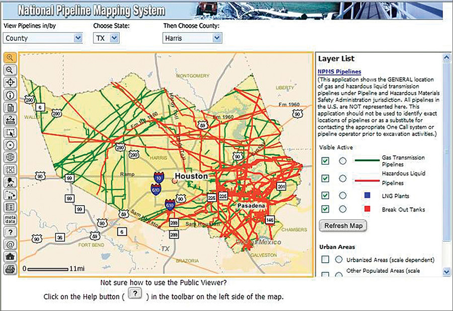 The U.S. Department of Transportation (DOT) Pipeline and Hazardous Materials Safety Administration (PHMSA) is charged with ensuring the reliable and safe transport of hazardous NPMS is a seamless geographic database (geodatabase) that contains data submitted by transmission pipeline, liquefied natural gas (LNG) plant, and breakout tank operators. Since the 2002 Pipeline Safety Improvement Act was passed, transmission pipeline and LNG plant operators have been required to submit their transmission pipeline and LNG plant location and attribute data to NPMS. Baker processes the data submissions and makes them available for federal, state, and local government agencies; pipeline operators; and, recently, the general public to view through the NPMS Web site (www.npms.phmsa.dot.gov). By providing secure online access to the data, PHMSA uses NPMS as a tool to support various regulatory programs, pipeline inspections, and authorized external customers. In 2001, Baker developed an ArcIMS Web site called the Pipeline Integrity Management Mapping Application (PIMMA) to share NPMS data with the general public. However, after the terrorist attacks of September 11, 2001, PHMSA conducted a data security review in conjunction with other federal agencies and decided to provide only limited public access to NPMS data. From September 2001 until April 2007, PIMMA had only been accessible to federal, state, and local government agencies and pipeline operators.