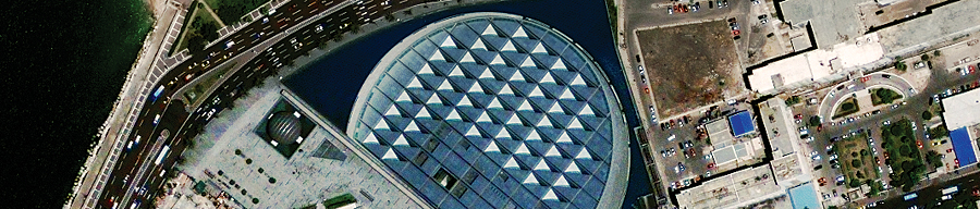 Half-meter resolution image showing the new Library of Alexandria, Egypt, which opened in 2002 (collected by the GeoEye-1 satellite on May 30, 2009). |