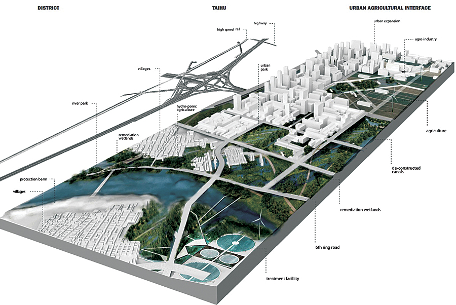 "Urban Agricultural Interface, Taihu District (Beijing)," by Harvard Graduate School of Design students Fadi Masoud, Andreas Viglakis, and Cameron Barradale from Geodesign Studio cotaught by professors Yu, Ervin, Mulligan, and Rowe, 2011.