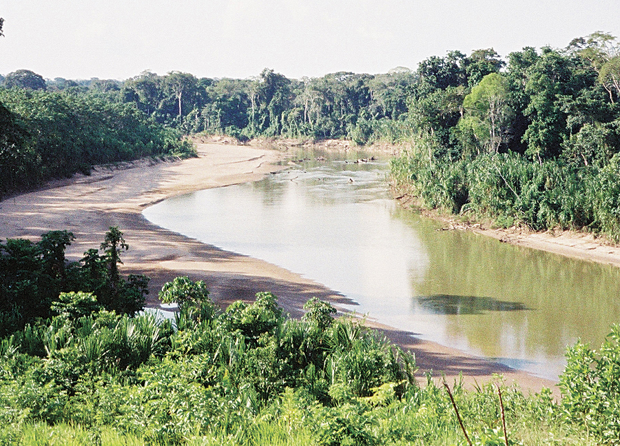 The 800 kilometers of boundary separating the Peruvian region of Ucayali from the Brazilian state of Acre crosses some of the wildest landscapes left on earth. The lush rain forests of this borderland region still resound with the low grunt of jaguar, while their canopy sways with acrobatic troops of woolly monkeys. Underneath the canopy roam hundred-strong herds of white-lipped peccary and the elusive and elegant ocelot.
