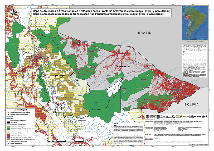 To improve transboundary planning, a grant from the Pan-American Institute of Geography and History was obtained to lead the Workshop to Integrate Data and Improve Technical Capacity to Mitigate Environmental Challenges in the Brazilian and Peruvian Amazon in June 2012.