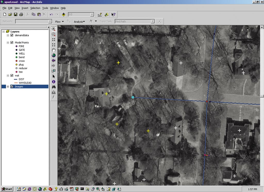 The City of Germantown, Tennessee, maintains approximately 950,000 feet of water pipe over 17.5 square miles and has a water distribution system that serves some 40,000 people through approximately 12,000 installations. However, the City did not have a complete and accurate digital mapping inventory of its water network. Because periods of drought in recent years had produced severe water shortages, the City sometimes had to purchase water from Memphis Light, Gas & Water (MLGW) to meet demand. The City of Germantown needed to build a more complete and comprehensive inventory of its water utility assets. In the past, the City had maintained its water data--including water mains, valves, fire hydrants, and monitoring wells--on a single 1" = 500'-scale Mylar sheet. Using digital orthophotography, the City had just completed planimetric data compilation, including water structures such as hydrants and valves, and wanted to update and convert its hard-copy water map into a GIS that would be spatially accurate with the new basemap. Once the inventory was updated, the City wanted to create a skeletonized version of the water network suitable for hydraulic modeling. Engineers could then run "what if" scenarios so system deficiencies could be identified, repair-and-replace strategies developed, and capital improvement plans made. Germantown was seeking an integrated solution. So the City upgraded to ArcInfo 8 and purchased a water modeling package that could use GIS data to construct and calibrate a hydraulic model. "We didn't have the time or money to develop a custom GIS database design from scratch," said Janiece Riggins, project manager and a GIS analyst in the City's Department of Community Development. "We wanted an efficient, out-of-the-box database design because we wanted to spend more time modeling and less time worrying about databases." Esri had suggested the City use the ArcGIS Water Utilities Data Model (formerly ArcFM Water Data Model), a free object model for water and wastewater utilities that required the development of an object-oriented GIS data model--Esri's geodatabase. "We attended an Esri seminar on the ArcGIS Water Utilities Data Model, and the package seemed really comprehensive," Riggins said. "The model provided a framework that would address our needs."