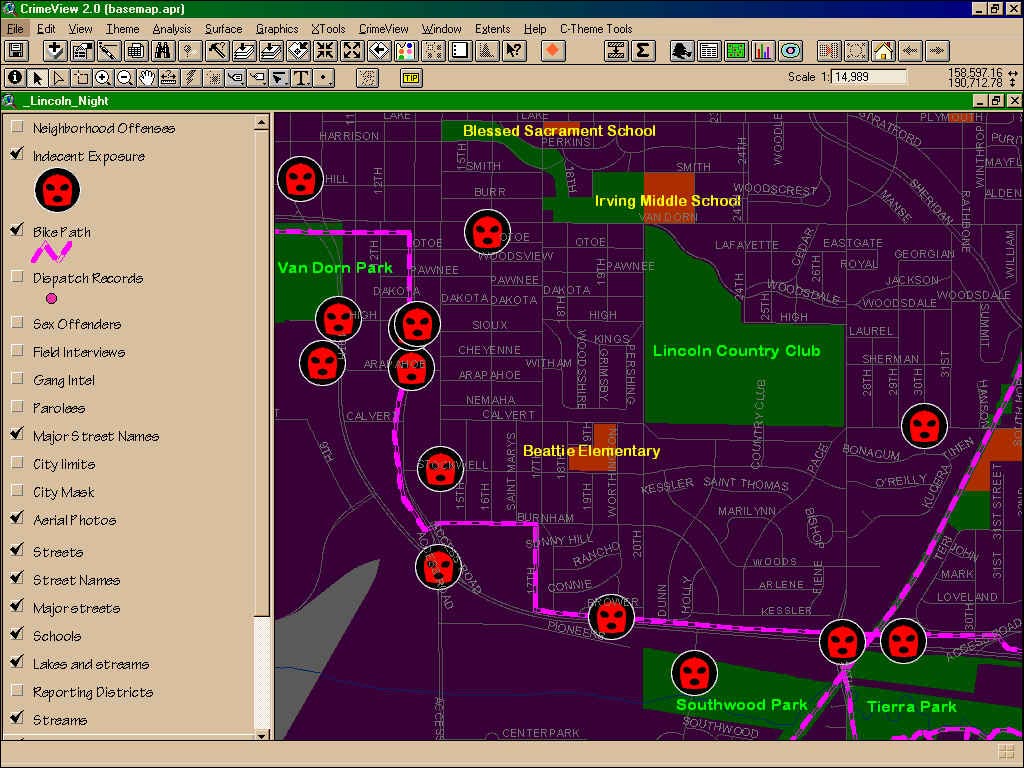 With a metropolitan police department of more than 300 sworn officers and more than 100 civilian employees serving a city with a population in excess of 225,000, it would be understandable if police managers focused on administrative matters such as budget, personnel, local politics, equipment purchases, and revision of department procedures and policies. However, "Police work is about solving crimes, preventing crimes, and protecting the quality of life in neighborhoods," says Tom Casady, chief of police, Lincoln, Nebraska. As far as Chief Casady is concerned, the mission of the Lincoln Police Department (LPD) is crime prevention and reduction, and a focus on these issues by management is essential to success. Chief Casady believes that maintaining focus on the mission requires that the crime fighting expertise and knowledge of his officers be systematically applied to the analysis of crime data. LPD has long believed that its officers on the streets are the best at investigating and clearing cases. As the chief puts it, "He or she is the one who knows the local places and is out there mixing it up with the victims, offenders, convenience store clerks, cab drivers, and street kids." Therefore, when it comes to focusing on crime analysis, the officer "is the one who needs to know that the offense he or she just worked is related to several other reports." However, while LPD has an extensive records management system (RMS) that provides volumes of available data, the problem has been almost too much data, making it difficult to piece any of it together into discernible crime patterns. Chief Casady began looking for an analytical tool that would allow his officers and crime analysts to easily navigate the rich, yet formidable, database. Recognizing that the basic component of crime data is geographic location, Chief Casady knew that he needed a GIS application to serve as the starting point for analysis of the crime data. In 1998, Chief Casady instituted monthly meetings of his officers to analyze the data by tapping into existing shared and common ArcView files that were already available from the Planning and Engineering Departments on the city and countywide network server. The meetings became known as ACUDAT, an acronym for Analyzing Crime Using Data About Trends. At the ACUDAT meetings, attended by commanders, supervisors, detectives, investigators, and officers, discussion of current trends, known offenders, suspects, specific crimes, and intelligence was initiated by looking at the computerized interactive crime incident map produced from the queries submitted by police staff to the ArcView software. The crime incident maps graphically revealed where specific kinds of offenses were concentrated. LPD then strategically deployed officers to target these crime patterns and successfully interrupt them through both investigative and preventative measures.
