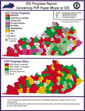 "GIS is essential for disaster projects such as the Webster County tornado project," says Tackett. "Instead of the damage assessment work taking months, with GPS and GIS the damage can be assessed in days or weeks. The GPS data was collected and photographs were taken in less than two days with all the processing and hot linking of photographs done at night in Webster County. And with just a little extra work, PVA assessment data was attached to show an estimated amount of property damage." The Technical Support staff took this information and printed maps for Webster County PVA, Municipal Office, and county officials. The Municipal Office used these maps to track turnoffs and turn-ons of electric, gas, and water and debris removal. "ArcView helped us assemble the data and print maps for the Providence Fire Department," says Tackett. "These maps were used to mark any property missed in the initial survey and keep track of gas valve or electricity turnoff for the Fire Department." The maps and data were provided to the U.S. Federal Emergency Management Agency (FEMA), which then declared the area a federal disaster eligible for federal assistance for cleanup and rebuilding. Since then, many individuals are either in new homes or at some stage of repair or rebuilding of their damaged homes. Although GIS has been used by other agencies in Kentucky over the past 15 to 20 years, GIS is relatively new to the Commonwealth of Kentucky Revenue Cabinet, which has made great strides in digitizing parcels in many Kentucky counties with the assistance of State Valuation's Technical Support Branch--Ron Johnson, cartography branch manager; Patti Royster, program coordinator; Mike Tackett, GIS coordinator; and Patti Hall, David Thornton, and B. David Wilson, geoprocessing specialists. To see the path of the tornado with damaged structure points, visit www.webstercountypva.com and click on Property Maps. A map of this county has been set up by Kent Anness of the Kentucky Infrastructure Authority, which has provided support and assisted with the Webster County GIS. For more information on Kentucky GIS, visit kygeonet.state.ky.us. See also "A Note From the Webster County Property Valuation Administrator." |