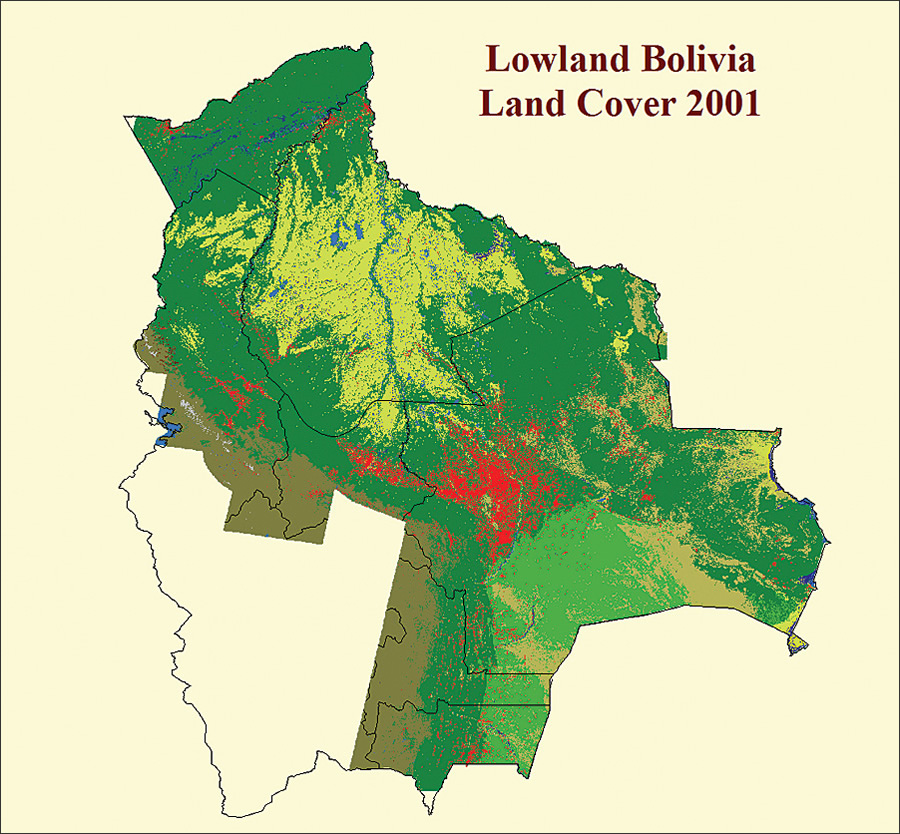 Due in part to a tremendous amount of economic growth in recent decades, the Bolivian lowlands saw forest loss of almost 3 million hectares between the years of 1992 and 2004, with almost half of this loss coming between 2001 and 2004 alone. This land change is expected to be the major contributor to biodiversity loss (even more important than climate change) and contributes to habitat degradation, fragmentation, and destruction. Indeed, the rate of deforestation is second only to that of Brazil. With forests dominating more than 65 percent of the land cover in lowland Bolivia, it is essential that this land-change dynamic be appropriately analyzed, particularly as we now know tropical forests are a critical component for maintaining climate system function and that they also represent the habitat for a wide range of species.