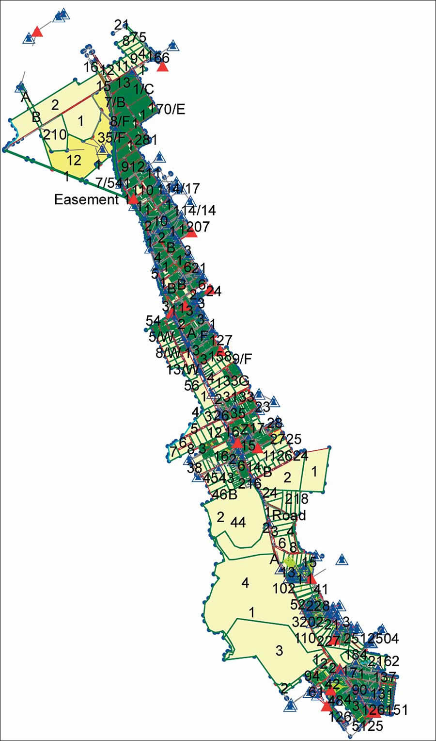 As each new parcel is joined to the survey data model, the accuracy of the fit is also measured, checking the spatial quality of the new data and providing another level of survey rigor. The data is then adjusted using least squares. The adjustment report compares all the computed lines with the original measurements. If the residuals are large, it usually indicates a problem with the plan, and additional field survey definition on the ground may be needed to properly isolate and address these apparent inaccuracies. The plans concerned have generally been given a weighting that either removes them from the least-squares adjustment or substantially reduces their impact such that their overall effect on the model is negligible. The electronic compilation is based on the intuitive method a surveyor would otherwise manually undertake to create a cadastral database. Model accuracy is directly related to the quality of the survey information available (e.g., in a new subdivision, the model accuracy would be 2030 millimeters). Prior to data entry, it is difficult to gauge the quality of the survey data. In the TIDC model, a reasonable length of the route corridor is adjacent to urban areas, which led the project team to believe the survey information would be reasonable and would not require a significant amount of extra field survey control.