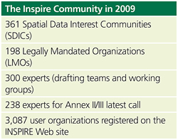 Three aspects are particularity important in understanding the work and the challenges of the drafting teams: first, each expert represents a community of interest and, therefore, has the responsibility to bring to the table the expertise, expectations, and concerns of this community; secondly, each drafting team has to reach out to all thematic communities that are addressed by INSPIRE. As a matter of comparison, it is worth recalling that the U.S. NSDI defined only seven framework themes: geodetic control, orthoimagery, elevation, transportation, hydrography, governmental units, and cadastral information, most of which have a federal agency that is taking the lead in data collection and management. The implication for the drafting teams is that they have a much more difficult task in collecting and summarizing reference material, seeking common denominators and reference models, and developing recommendations that satisfy user requirements without imposing an undue burden on those organizations that have day-to-day responsibility for data collection and management across Europe. Seeking compromise between different requirements and perspectives is crucial to the work of each drafting team. Last, but not least, it is important to note that the drafting teams have ownership of their work. They make the recommendations and submit them for review to all the registered SDICs and LMOs and the representatives of the Member States. It is only after they have taken on board all the comments received that the Commission takes ownership of the draft implementing rules and submits them for internal consultation. After revision and checking, the draft implementing rules go through the final round of the democratic process before becoming a new legal act. This involves qualified majority voting by the representatives of the Member States and the scrutiny of the European Parliament. The complexity of this participatory approach is certainly innovative not only in relation to the developments of SDIs but also more generally to the formulation of public policy at the European level. The outcome produces both consensus-based policy and the development and maintenance of a network of stakeholders that make it possible to implement more effectively this distributed European SDI. The ChallengesAlthough a great deal of work has clearly taken place with the support of many stakeholders, there are still several organizational and technical challenges (and opportunities) that need to be addressed. Organizational: The most immediate challenge is to maintain the momentum and the high level of commitment of all stakeholders and the experts contributing to the development of the implementing rules. This is not trivial and requires a notable amount of resources (time, money, expertise, commitment) to ensure that stakeholders feel ownership of the process, which then becomes a prerequisite for more effective implementation. Just to give an example of the scale of the task, the development of the data specifications for Annex I themes involved addressing more than 7,500 comments received from hundreds of stakeholders and organizing some 350 meetings (both physical and virtual) over a two-year period. If you consider that there were 8 themes in Annex I and another 26 to do, in addition to the revisions and maintenance of all guidance documents already created, then you have a sense of this facet of the organizational challenge. The INSPIRE forum is one way to address this challenge, but managing expectations, ensuring real participation, and delivering the benefits are key aspects we constantly need to focus on. Another facet, which is even more important, is the organizational challenge in the Member States to implement INSPIRE. The INSPIRE Directive asks Member States to establish and maintain their SDIs, nominate an organization as a contact point with the Commission, and set up appropriate coordinating mechanisms, all of which have given rise to a flurry of activity across Europe. In many countries, SDIs already exist and work well at national and subnational levels. So the effort is more focused on agreeing on a division of responsibility than in setting up new structures. In other countries, INSPIRE offers an opportunity for the organizations that have been leading SDI developments for years to get their just recognition and acquire new status and legitimacy. Of course, the difficult financial climate of this period makes it potentially more challenging to invest in new infrastructures and ways of working. Hence, the challenges in most countries are to leverage resources available from different sources (European, national, international) and/or ensure strong synergy between the investment required by INSPIRE and those committed in related projects, for example, in the framework of e-government. In this sense, the work needed is critical not only to align sources of funding but also to ensure that initiatives, standards, systems, and deployments are well coordinated and that they do not duplicate, or contradict, each other. Readers of this article who are familiar with large public-sector organizations will know how challenging this may prove to be. Underpinning this organizational challenge are the key issues of awareness, education, and training. Although we have involved thousands of people in the development of INSPIRE, and most national-level organizations in the Member States are aware of this initiative, there is still much to do. Even in the organizations involved in INSPIRE, sometimes only a few people are actively participating, and the level of awareness of INSPIRE and its future impacts may be lost to other parts of the same organization. Moreover, many public-sector administrations at the subnational level still have limited or no knowledge of INSPIRE. This is partly due to (1) insufficient dissemination efforts in the Member States; (2) local and regional authorities only becoming more directly inv