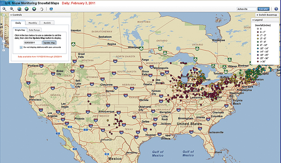 US Snow Monitoring Snowfall Maps present recent and historical snowfall analysis for the United States.