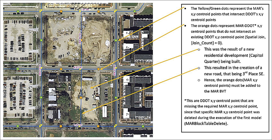 MAR-SD is maintained by DC GIS's MAR-SD Team (MAR Team). It was tasked with revising the original manual for updating MAR-SD's CBVT. The manual essentially consisted of a series of sequential geoprocessing steps, which were to be performed individually, and all the intermediate and final datasets and was to be stored in a flat file structure. The MAR Team considered this rudimentary, disorganized, and inefficient. Within this context, the team set forth to develop a more efficient, automated workflow that facilitates the collection, organization, and spatial analysis for the above-mentioned MAR-SD CBVT dataset to reflect the changes made to DDOT's street centerline dataset. After evaluating the different options, the MAR Team decided that this GIS workflow would be accomplished through the ArcGIS modeling application.