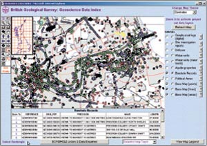 To some extent, the GSOs themselves accept responsibility for the failure of potential users to exploit their knowledge base. After all, for many years the traditional output of their work has been complex, technical, and academic paper geological maps and reports. The quality of their science was never in question but the relevance of their output to our society and environment was not obvious to the public, governments, and commerce. However, over the last 20 years many European GSOs have been trying to address that shortcoming and meet user needs with a whole range of applied and thematic products, many of them driven by the users themselves. The more advanced GSOs started to apply CAD and RDBMS software in the 1980s, and the majority are now using Esri GIS and mapping technology to create maps and customized products for a whole range of clients. A Harmonized and Searchable DatabaseIn 1997, 15 GSOs (operating through EuroGeoSurveys, their umbrella association based in Brussels) were successful in obtaining European Community (EC) funding for a proposal to construct a harmonized and searchable database of geoscience information as far as the metadata level. The aim was to exploit GIS and the Internet to advertise and improve Above right: A screenshot from an iGDI session displaying borehole information held by BGS in the Newcastle-upon-Tyne area, United Kingdom. The metadata within GEIXS is spatially referenced, and in addition to text retrieval, a graphical user interface (innovative at the time) was developed. The database is also linked to a multilingual thesaurus so that it can be interrogated using 12 European languages. GEIXS was extended in December 1998 to include eight central European nations and Norway, and the EC contract was completed successfully in December 1999. Perhaps one of the more understated but fundamental achievements of the project is that it galvanized 24 independent geological survey organizations to pool expertise and resources and work toward a common goal! The GEIXS system continues to be managed and maintained by the EuroGeoSurveys association. The virtues of the concept remain, but, as one might expect of an information system whose initial development started more than four years ago, its implementation is now in need of an overhaul. A major upgrade is therefore currently underway; the centralized database model, appropriate four years ago when few GSOs had the capability to organize their metadata, has proved increasingly difficult to maintain and will be replaced by a distributed system accessed via a single portal. The hardware and software platform will be upgraded, taking full advantage of Web-enabled GIS technology to ensure that the unique and invaluable geological survey knowledge bases continue to be visible and accessible. High-level data catalogs like GEIXS have a crucial role to play, but GSOs now have the bit between their teeth and, both collectively and individually, are exploiting GIS technology to make more detailed information available across a whole range of geoscience disciplines. Following are some descriptions of only a few of these services and initiatives. An International Geological Jigsaw PuzzleAn ambitious GIS project, the 1:5 million International Geological Map of Europe and Adjacent Areas (IGME 5000), is being managed and implemented by the German Federal Institute for Geosciences and Natural Resources under the aegis of the Commission of the Geological Map of the World (CGMW). The project now involves more than 50 European and adjacent countries and the final area covered will reach from the Caspian Sea in the east to the Mid-Ocean Ridge in the west, and from Svalbard in the north to the southern shore of the Mediterranean Sea. The project is developing a GIS underpinned by a geological database, from which standard and customized geological and thematic maps providing up-to-date and consistent information will be produced. The GIS will hold significantly more information than the previous printed maps could ever provide. It will also offer versatility, for example, the ability to retrieve and present for the whole of Europe information on rock age, composition, and structural and metamorphic features. More importantly, the IGME 5000 GIS will provide the essential foundation for pan-European applied geological/thematic mapping. The project platform is ArcInfo 8, ubiquitous in GSOs across Europe. However, the ultimate intention is to make the IGME 5000 GIS available on the Internet using Web-based mapping software. To deliver harmonized geological information across Europe in digital form, even at such a low resolution, requires exacting and extensive pan-national standards that simply did not exist and thus, in many respects, the IGME 5000 project is acting as a vehicle to initiate such standards in Europe. While previous paper geological maps have, and will, tolerate inconsistency between map sheets, GIS and related digital systems need a much more stringent approach. The goals of interoperability and data integration, of obtaining the optimum benefit from information technology, and the ability to share and supply harmonious information for scientific research to address pan-national geological problems across frontiers are entirely dependent on the continuity and consistency that these standards will bring. For more information, contact Kristine Asch (e-mail: K.Asch@bgr.de, Web: www.bgr.de/karten/IGME5000). Climate Control Through Applications of Carbon Dioxide StorageFollowing the 1997 Kyoto, Japan, climate conference, a consortium of eight European GSOs launched a project for 2000, spanning three years, that studies the technical and economical feasibility of wide-scale application of carbon dioxide (CO2) storage in the subsurface. This project (named GESTCO) will undertake research into whether sufficient geological storage capacity is available for specific emission sources within selected key areas in Europe. Sur