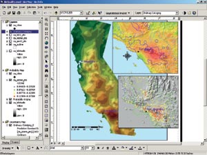 Spatial Data Exploration Extension for ArcGISIntroducing Geostatistical AnalystGeostatistics has long been a highly specialized and highly valued field focused on surface modeling of point information and assessment of error probability of resulting surfaces. ArcGIS Geostatistical Analyst is a new extension to ArcGIS 8.1 that Right: Geostatistical Analyst provides accurate surface creation with advanced geostatistical interpolation methods and an entirely new friendly wizard interface. Applications include determining areas of possible mineral resources (oil/gas) to assessing possible environmental risks. The Geostatistical Analyst gives users the freedom to investigate, visualize, and create surfaces and perform sophisticated analysis. The Geostatistical Analyst builds upon the basic surface creation introduced in the Spatial Analyst extension by implementing an exploration environment and providing advanced interpolation methods for optimal surface creation. The geostatistics methods are implemented in a highly interactive and visual environment. Explore Your DataGeostatistical Analyst incorporates exploratory spatial data analysis (ESDA) tools for examining data peculiarities such as distribution, global and local outliers, trends, spatial autocorrelation, and covariation among multiple data sets. ESDA can also be used for determining which geostatistical interpolation method is appropriate for your data. ESDA is implemented with ArcMap, providing users with the capability to visually explore the data for further analysis. Advanced Surface Creation with Friendly WizardsA series of wizards and dialog boxes assist users in determining the values for the parameters specified. Some of these dialog boxes and tools are applicable to almost all Above left: Users may adjust advanced analytical options such as anisotropical influences and error modeling. Perform DiagnosticsAfter choosing the parameters for the model, it is useful to recognize if the model is optimal for the particular data set. ArcGIS Geostatistical Analyst provides cross-validation and validation tools that allow evaluation of the surface. The tools quantify the "accuracy" of the model. You can either accept the model and its parameters, or you can refine the parameters of the model to create a better surface. Cross-validation and validation help you make an informed decision as to which model provides the best predictions. The calculated statistics serve as diagnostics that indicate whether the model and/or its associated parameter values are reasonable. ArcGIS Geostatistical Analyst is much more than an interpolation software packageit provides a dynamic environment with a wide variety of tools for data exploration, and a friendly wizard environment for optimal surface creation. Geostatistical Analyst gives you the power to fully understand the qualitative and quantitative aspects of your data. By providing you with the freedom to statistically predict and model spatial phenomena and incorporating powerful exploration and visualization tools, Geostatistical Analyst effectively bridges the gap between geostatistics and GIS. For more information, visit www.esri.com/geostatisticalanalyst or call Esri at 1-800-447-9778. To purchase ArcGIS Geostatistical Analyst in the United States, visit http://store.esri.com, call Esri at 1-800-447-9778, call your Esri regional office, or contact your local reseller. Outside the United States, please contact your local Esri distributor. Features Available in ArcGIS Geostatistical Analyst