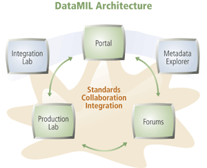 In its initial phase, the DataMIL project will principally serve State-wide layers of the Delaware Spatial Data Framework and USGS's The National Map. Delaware's framework includes transportation, elevation, aerial photography, land use/land cover, hydrography, geographic names, governmental units, geodetic control points, and tax parcels. This set of data, along with man-made structures, is consistent with data themes comprising The National Map. USGS's The National Map is the nation's topographic map for the 21st century. It is the USGS vision for a seamless, current, accurate, and consistent geographic database for the country. This concept can only be achieved through partnerships among the academic institutions, private companies, state and federal agencies, and the USGS. The Delaware DataMIL is a leading pilot project and provides Delaware's portion of The National Map. From Mark Demulder, program coordinator, Cooperative Topographic Mapping, USGS: "Delaware's initiative is tightly aligned with The National Map vision. The Delaware consortium is leading the way to offer data and capabilities for the State that are the base for partnership development and extension of The National Map concept." DataMIL ArchitectureTo achieve the goals outlined above, the DataMIL team chose Esri's ArcGIS technology as its GIS building block. Esri provides server (ArcIMS 4, ArcSDE 8.2) and client (ArcGIS Desktop 8.2, ArcIMS 4 Viewers) software in a distributed GIS environment. Additionally, WebBoard 5 (Akiva Idea Technologies) was selected as the base for user interaction with the data stewards. DataMIL is built on open standards and specifications formulated by national and international standards committees on data exchange and development. These include the Open GIS Consortium Web Map Server standards and Federal Geographic Data Committee metadata standards.