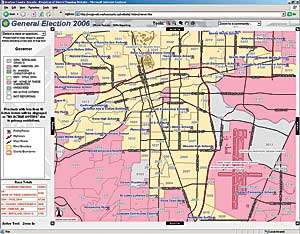 The November 7, 2006, general election in Washoe County, Nevada, saw 120,620 registered voters cast their votes on 54 races and 11 ballot questions. Television, radio, and various Web sites monitored the results live throughout election night. As polls closed and ballots were counted, a new method of tracking the election was also available. Like other information outlets, the 2006 Washoe County Live Election Mapping Web site monitored vote counts, but it also gave viewers the additional component of real-time updated maps at the voter precinct level. Static election maps have become very popular over the past several years but were often not available for days after the election. Viewers of the Live Election Mapping Web site were able to monitor dynamic maps as the results were counted. Like many counties or parishes in America, Washoe County migrated to an electronic voting system in 2004. The county uses the Sequoia Voting System, which consists of stand-alone electronic voting machines. Voters place a voter access card into these machines and, through a succession of interactive screens, make their choices via touch screen technology. Each machine tallies the electronic ballots on a memory card that is then returned to the Registrar of Voters office as the polls are closed. During the 2004 election, the concept of integrating the election results with a GIS application was envisioned by Washoe County manager Katy Singlaub. After consultations with Dan Burk, the registrar of voters, and Thomas Lo, the GIS manager, the decision was made to pursue an online GIS application for the 2006 general election. The Washoe County Technology Services Department was tasked to devise a way to access the secure voting system and provide results online in real time. A workflow was developed by Brian Takemoto, senior technology systems developer, to export the tallied election results into a Microsoft SQL Server database running ArcSDE. Initial testing of the application occurred in August during Nevada's primary election. At the time, the Web site tracked a portion of the primary races and was only available internally to staff and management. The Web site performed well during the primary and was so well received by election staff that a decision was made to develop a complete election-monitoring application available to the public for the November 7 general election. On election night, the public was able to monitor the progression of each race and ballot question by precinct on a map as the results were tallied.