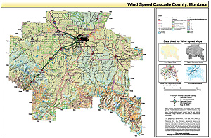 "There is a tremendous wind resource in Montana," Beltrone says, "but wind is generic, and the way to differentiate the wind that crosses through your county and the next county is to draw attention to it and make it easier for developers to explore your wind resource and see its value over wind in other areas." Cascade County is using GIS to help developers interested in investing in wind power easily research parcels available for lease and the wind resources that exist on those parcels. In addition to regional developers, interest has come from business people as far away as Japan and Ireland internationally and Florida in the United States. "We have a lot of people coming into our office looking for data on wind," notes Tom Mital, GIS manager for Cascade County. To better serve these interested parties, Mital used his county's ArcGIS Desktop software to create a wind map book that combines wind, transmission, parcel, and road data. The wind speed estimates for an elevation of 50 meters above the ground were produced by TrueWind Solutions LLC (Albany, New York) using its Mesomap system and historical weather data. The data was then validated with surface data from the National Renewable Energy Laboratory and wind energy meteorological consultants.