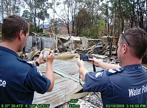 Sergeant Greg Barras, situation unit leader, states, "By the time we developed the handheld mobile solution, QA'd the process, and trained our operators, we achieved the following: there were 5,781 total properties searched; 3,352 separate location searches conducted on buildings, sheds, vehicles, and water tanks; 9,600 photos taken using georeferenced cameras; and 1,539 records collected using ArcPad 8 and transmitted via the 3G cellular network to the server at the Rescue Coordination Center without any issues. I would argue that to acquire equipment, develop a system and process, get approval, train operatives, and successfully collect real-time data in less than three weeks is a mighty effort. Especially since we have not been able to achieve this over the last eight years for a raft of different reasons." More InformationFor more information, contact acting sergeant Greg Barras, Victoria Police (e-mail: gregory.barras@police.vic.gov.au). |