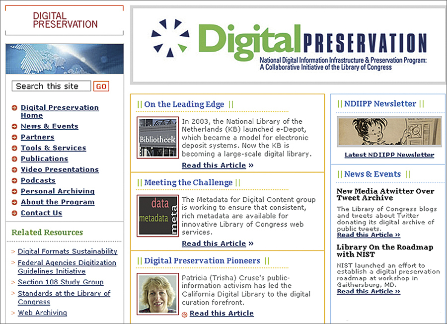 While digital geospatial data is increasingly accessible, it is also fragile and at risk of loss unless efforts are made to preserve it and keep it accessible over the long term. How will we ensure that the digital records of our contemporary landscape will remain accessible in the future? The United States Library of Congress is addressing this issue. The mission of the Library of Congress is to make its resources available and useful to the United States Congress and the American people and to sustain and preserve a universal collection of knowledge and creativity for future generations. In 2000, the library established the National Digital Information Infrastructure and Preservation Program (NDIIPP) with the mission to develop a national strategy to collect, preserve, and make available significant digital content, including geospatial data, for current and future generations.