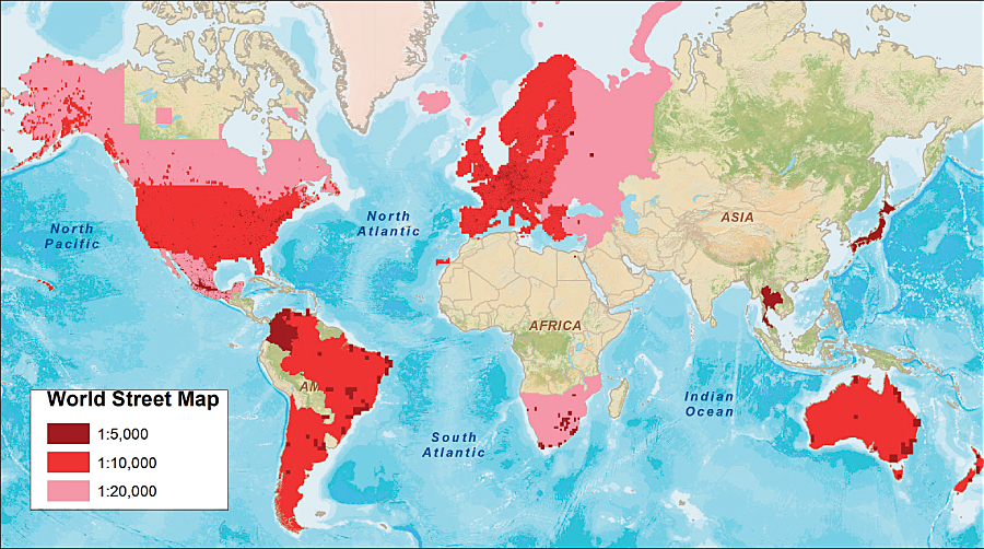 Updates to the World Street Map include street data at large scale for a number of locations around the world.