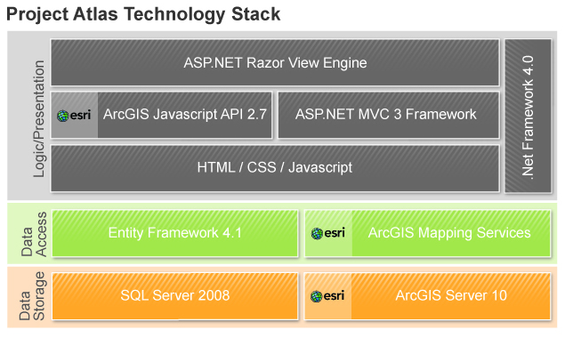 Esri products were integral to the data storage, data access, and logic/presentation layers of the Project Atlas solution. (Courtesy of GeoEngineers.)