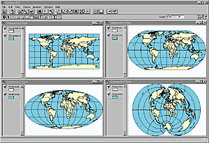 Database Access Version 2.0 allows for a dynamic link between the records in a database table and the geographic features in a database theme. This means that a selection made on the theme modifies the selection displayed in the database table. Conversely, a selection made on the database table modifies the selection displayed in the database theme. In addition to selection support, selection-enabled database tables enable the display of all records returned from a query. Database tables are now managed in memory and not cached to disk. This is accomplished by maintaining a subset of records in memory and adjusting the subset as the table is scrolled. Report Writer Extension-Seagate Crystal ReportsArcView GIS 3.2 includes an upgrade from Seagate Crystal Reports Version 6.0 to Version 7.0. Advantages of Version 7.0 include faster reporting and new wizards for advanced reporting. Data Integration UtilitiesThe following new data integration utilities are included with ArcView GIS 3.2: DXF Export--A new data conversion utility providing shape to DXF output is included. SDTS Data Import--ArcView GIS 3.2 includes a new data import utility that imports SDTS raster and point data. Esri GRID files and ArcView GIS point shapefiles are created, respectively. CADReader--The CADReader is compatible with AutoCAD 2000 DWG files (when available). New Sample Utilities and ExtensionsThe following new sample data integration utilities and extensions are included with the sample utilities distributed with ArcView GIS. Digest (ASRP/USRP)--This sample extension provides direct read support for raster data compliant with DIGEST Annex A, a format primarily used by international defense and military agencies. The reader georeferences DIGEST images. There are two profiles: Arc Standard Raster Product (ASRP), produced by the UK Mil Survey, and UTM/Universe Polar Stereographic (UPS) (USRP), produced by the French Defense Mapping Agency. The sample extension supports ASRP 1.1 and 1.2 and USRP 1.2 and 1.3. MGRS Coordinate Display--This sample extension provides interactive display of coordinates on the screen in the Military Grid Reference System (MGRS). MGRS is a coordinate system widely used in defense for designating the location of points of interest. The extension reads source data in decimal degrees, converts the coordinates to MGRS, and displays the MGRS coordinates in a dialog box in real time. The extension converts MGRS coordinates to UTM/UPS and latitude/longitude. As an option, the user can save the UTM/UPS and latitude/longitude coordinates in a separate file. The utility also generates graticules within an MGRS zone for WGS84. S-57 Data Converter--The S-57 data format is defined in the International Hydrographic Organization's Special Publication S-57. This format was formerly referred to as DX-90. S-57 is object-oriented vector data stored in binary format. This sample extension converts the converted binary S-57 (ENC) data to ArcView GIS shapefiles. The extension supports all data types from S-57: spatial objects (connected nodes, isolated nodes, edges, and faces) and feature objects (point, node, line, area, and composite). RPF Indexer--This sample extension uses the geographics extent of each raster product format (RPF) data set and generates a shapefile that can be used as an index theme for RPF image formats. The index theme helps the user choose the images of interest for easier display. The user selects a block or draws a box on the index theme in the View document to display the corresponding images. The user can click on the block (or user-drawn box) again and the images will undraw. Esri Data & MapsUpdated Esri Data & Maps CDs are included with ArcView GIS 3.2. Data updates include