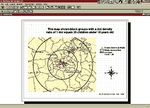 Crown American realized that in order to attract retail tenants to their malls and get leases signed they had to offer their prospective clients as much data as possible, faster than the competition could provide, in order to make the deal. Obtaining detailed market information via outside consultants could cost thousands of dollars and several weeks to produce. And doing analysis in-house meant ordering data, importing it into a PC, and then trying to incorporate it into some spatial analysis program, which could take many hours and a good deal of money. Knowing that time is critical when securing tenants, Crown American needed an alternative solution to hiring out to consultants or the laborious task of going through the steps to purchase additional data sets for performing market analysis on complicated software. They were then introduced to ArcView Business Analyst. "We originally were using another mapping software application," says Evelyn Hart, tenant research specialist for Crown American, "but because of the cost involved with acquiring demographic data, we switched to ArcView Business Analyst. The included demographic data was the real selling point for us." By implementing ArcView Business Analyst, they were able to save both the cost of hiring outside analysts and purchasing extra data, and, moreover, they were able to quickly provide their clients with accurate reports and detailed maps of many market areas. "We needed to provide prospective tenants as much information as possible up front to get the deal done," says Hart. "This meant we had to do the research and analysis in-house and at a nominal cost." Doing the analysis themselves, with all of the included data in one place, yielded a faster turnaround and would show the tenant that Crown American is an efficient and market-intelligent landlord. At first Crown American used ArcView Business Analyst to create buffer rings around their malls and illustrate the demographics within a given radius such as 5, 10, and 15 miles of the mall. They soon realized how powerful and intuitive this software is and began to enhance the data analysis to include competitive analysis for their prospective and existing tenants. They would query the Dun & Bradstreet Business data for companies that perform similar services or sales to their client's company within the same trade area. By being able to quickly gather the information and plot the stores on a map, Crown American could show where their client's competition was geographically located. The colorful maps provided visual emphasis to the analysis that spreadsheets alone could not illustrate.