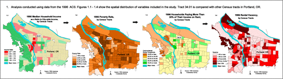In addition, with data being collected just every 10 years, the information from the long form becomes quickly outdated, and its usefulness declines each successive year, according to Nancy Torrieri, senior program analyst, Demographic Survey Division, U.S. Census Bureau. Yet billions of dollars from public and private funds are doled out among population groups based on their social and economic profiles derived from the census. "There was a need for a system that continuously collects data throughout the year and the decade to produce measures of change over time and more current data than the decennial census long form," says Torrieri. A Continuous Stream of Accurate DataIn the 1990s, the Census Bureau began detailing a plan for implementing a continuous collection and measurement system that would produce annual and multiyear estimates of population characteristics. The program, the American Community Survey (ACS) (see sidebar), was initiated at four sites in 1996 and expanded to eight in 1997 to determine its operational feasibility, evaluate costs and procedures, and evaluate the new data. By 1999, the number of pilot sites had expanded to 31 areas that represent various combinations of demographic characteristics. Pending congressional approval for funding, in 2003 the Census Bureau plans to implement the ACS in every U.S. county and Native American and Alaska Native area based on a total annual sample of three million housing units. In full operation, ACS data will be available every year for areas and population groups of 65,000 or more beginning in 2004. For small areas and population groups of 20,000 or less, it will take five years to accumulate a large enough sample to provide estimates with accuracy similar to the decennial census. Updated information for these areas will be available starting in 2008 and every year thereafter. The ACS brings the GIS professional a source of current, accurate demographic information to use in conjunction with the Topologically Integrated Geographic Encoding and Referencing (TIGER) system data (TIGER/Line), resulting in a powerful tool for community decision making, marketing, policy analysis, and other geographic applications that rely on census data. The Census Bureau's population estimates program will improve, and because the ACS can screen for households with specific characteristics, it will help establish robust sampling frames for other surveys. Applications in Health CarePlanners and analysts in several ACS development sites are already using ACS data in GIS applications to identify and address community issues such as health care, public safety, education, economic development, needs of the elderly, child welfare, rural issues, and transportation. In Springfield, Massachusetts, health care professionals are integrating Hampden County ACS data with information from the area's two major medical centers and the health, planning, and police departments to use in modeling applications. Implemented in ArcView and S-PLUS for ArcView for GIS, the models help to identify geographic areas and population subgroups that need health care intervention, specifically in the areas of youth violence and late stage breast cancer detection. "We wanted to create a profile of communities in Springfield in need of increased breast cancer screening to aid in planning intervention programs," says Jane McCall Garb, a biostatistician and spatial epidemiologist on the GIS team at Baystate Medical Center. "Specifically, we wanted to identify parts of the City with high concentrations of advanced disease and to identify socioeconomic and demographic factors that contributed to this." Garb and her coinvestigators Amy Pasini, Jessica Schueler, Isha Mustafa, and Richard Wait first mapped the locations of late-stage breast cancer cases in ArcView to see where clustering might indicate the need for intensified intervention efforts in certain parts of the City. The spatial scan statistic would confirm any visual indication of clustering seen on the map. With ArcView they integrated ACS data on the number of women over 40 in each police sector to calculate and map rates of advanced disease for each sector. Additional population and housing data from the ACS enabled them to see if the pattern of late-stage disease matched that of any sociodemographic factors. Spatial regression enabled further exploration of these trends. While there was no significant geographic clustering, race, marital status, completion of high school, and foreign-born status were significant factors. This methodology will be useful in improving the design of health care intervention programs and resource allocation. Garb says the ACS data provides denominators for calculating disease risk and assists in creating community profiles to identify the size, location, and demographic makeup of high-risk populations. Pinpointing Housing NeedsTimely, detailed, and accurate data is indispensable for housing assessments. Case studies include