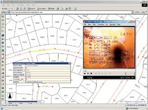 With the scope of the initial phase agreed upon, the first step was a proof of concept to link the ArcIMS mapping software directly to Esri Business Partner Hansen Information Technologies' maintenance database on an Oracle/UNIX Sun Ultra 1 server platform, where 10 years of work order and TV inspection history were stored. The Hansen Work Order (WO) data set was the first of numerous data sets in multiple databases to be accessible to ArcIMS and a companion product, Internet server-based GeoSmart.net. (GeoSmart.net is MoosePoint's proprietary Web site application builder, which utilizes a Site Builder Wizard to allow nonprogramming staff to build and maintain sophisticated Web applications.) Important for this application, GeoSmart.net connected directly to external databases and permitted their seamless integration with existing ArcIMS map services. This made it very easy when the WO database was later converted to Microsoft SQL Server on a Dell server. It also provided enhanced printing capabilities. The single architectural requirement for GeoSmart.net was that it must reside on a Web page server. For the initial phase of the USD project, ArcIMS, GeoSmart.net, and SQL Server all resided on a single server. The configuration is entirely scalable; therefore, if performance begins to lag as utilization increases, ArcIMS can be moved to its own server and then to SQL Server. Finally, Web page servers with load balancing can be added. Project ScopeThe initial phase of the project focused on delivering the top five priorities previously agreed upon within USD management. They included