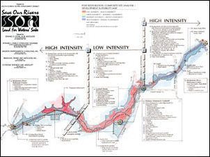 Even before they had finished the project in 1971, the Army Corps of Engineers had decided that channeling the Kissimmee River in central Florida was not a good idea. In seven years, the Corps had converted 103 miles of free-flowing river interlaced with wetlands and teeming with wildlife into a 56-mile, straight, uniform channel. During the years that followed channelization, the South Florida Water Management District found that 90 percent of the waterfowl and 43,000 of 60,000 acres of floodplain had vanished. In the meantime, the area experienced some of the country's most rapid growth. Nearby Orlando saw the development of Disney World and a number of other theme parks, which greatly increased the number of tourists and tourism-related businesses. The local people adopted airboating, while retired folk from colder climates arrived with motorboats. The balance of nature in the Kissimmee watershed was upset because of many factors. In 1981, the Resources Rivers Act directed the district and others to provide recreation in "an environmentally acceptable manner." The district contacted the University of California, Berkeley, where scientists developed four restoration proposals that were tested in 1984 and 1985. One of these proposals has been used in restoring the river's entire length. By 1990, the restoration area was already providing hiking, picnicking, fishing, boating, canoeing, and camping. "Save Our River"When the Kissimmee River Restoration Act was passed in 1991, it set the stage for restoring the ecosystems in addition to providing recreation. Shortly thereafter, EDSA (Fort Lauderdale, Florida) was hired after an extensive competitive analysis to lead a team of landscape architects, hydrology engineers, wildlife experts, vegetation specialists, and market analysts. The team prepared a recreation management plan for the 56-mile river corridor that encompasses approximately 60,000 acres of land. Because the district had already been working in the ArcInfo GIS environment and had a great deal of data available in that format, EDSA prepared its analyses principally using ArcInfo along with other available software. What was unique about the Kissimmee "Save Our River" restoration project was that the base conditions did not yet exist. At the time of the study, the channel had not been removed and the historic riverbed had not yet been restored. The vegetation had not yet regenerated itself, although studies showed that natural regeneration was likely. The GIS allowed the team to study a future, restored floodplain. From a planning perspective, as landscape architects, EDSA was charged with developing a methodology for determining recreational suitability for conditions that did not exist. The methodology that was prepared was scrutinized by the scientific community from the South Florida Water Management District and was found to be a sound scientific model for determining recreational suitability while not degrading what would be the restored river ecosystem. MethodologyThe team took on the task of documenting the existing recreation facilities, studying population projections for the area, and estimating future demand for various types of recreation. The team determined the number of people currently using the study area through permits issued for boating, fishing, and hunting and from the state Parks Department records. The team then developed environmental restoration proposals in areas removed from heavy recreation. Its primary objective was to produce a recreation and natural resources management plan that would not degrade the restored Kissimmee River ecosystem. Since the river was not in its restored condition, the recreation effects had to be estimated against a future, healthy ecosystem. The best way this objective could be reached from a planning and methodology standpoint was to utilize ArcInfo software to model what would be the postrestoration condition. Assessing the Land