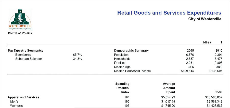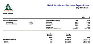 The success of Business Analyst Online encouraged Esri's developers to enhance Business Analyst Online for specific industry sectors. "Real estate and retail professionals have long appreciated the timely delivery of information about people, housing, and businesses for a particular area," says Jim Herries, Business Analyst Online product manager. "We receive calls every day from other industry professionals who request slight variations of Business Analyst Online. Because Business Analyst Online is built on top of the ArcWeb Services platform, it's relatively simple to repurpose the workflow, user interface, and underlying data services to suit each industry." For Economic DevelopmentSoon after Business Analyst Online was released, professionals in economic development and urban planning quickly recognized the benefits of offering current demographic data and presentation-quality maps to their staff, the local population, and prospective business owners and investors. Economic developers and urban planners use customized reports and maps from Business Analyst Online to quickly screen properties and provide professional results to their customers.