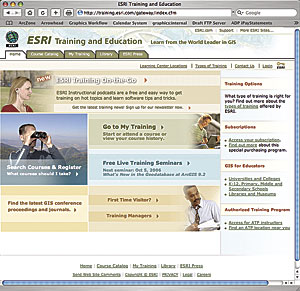 In addition to new courses in 2006, Esri Educational Services also unveiled the third learning pathway in its Learning Pathways program. The Fundamentals of ArcGIS Desktop pathway is designed for those who are new to GIS and ArcGIS Desktop. The pathway includes instructor-led and Web-based courses that provide information on GIS concepts and the uniqueness of spatial data and explore how GIS can be used to solve problems and answer questions. Those completing a learning pathway will acquire knowledge and skills that can be applied directly to their jobs. Visit www.esri.com/pathways for more information on learning pathways. The year 2006 saw the debut of Instructional Series podcasts to make training accessible by anyone anywhere. With more than 10,000 downloads per month, the podcasts are the newest way to receive free Esri software training on demand. They provide short, focused training that fits effortlessly into anyone's schedule and can easily be downloaded to a computer or MP3 player. Listeners can choose from more than 25 topics, including Editing in ArcGIS: General Tips and Tricks, Geodatabase Archiving: Introduction to Concepts and Capabilities, and Performance Tips and Tricks: ArcGIS Desktop. Visit www.esri.com/podcasts to subscribe to the podcast feed to be notified when new content becomes available. Visit www.esri.com/training to begin using this new resource. Esri Press
