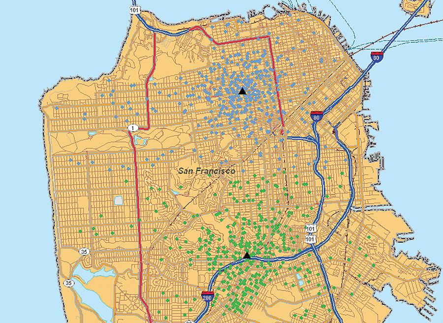 Two key components drive Esri's geocoding technology: the address locator and the underlying reference data. With the address locator, users can define the methodology used for matching, and the underlying reference data is a bank of information from which geocoding results are derived. The address locator, the primary geocoding tool in ArcGIS, refers to a geocoding rule base that directs the engine to perform address standardization and defines how an address is matched against potential records. Address locators contain geocoding properties and parameters, a snapshot of address attributes in the reference data, and queries for performing a geocoding search. When users create an address locator in ArcGIS, they must also specify the reference data they want to use for matching. Primary reference data usually consists of street networks; however, users can also use parcel maps and other types of data, including data from commercial data vendors. Combined with commercial data, Esri's geocoding engine provides an advanced and reliable geocoding solution for accurate address matching. An example of Esri geocoding engine bundled with commercial data is the geocoder found in ArcGIS Business Analyst desktop software. In this case, Esri created a composite address locator that uses Tele Atlas/TomTom reference data in five participating locators: Address Points, Street Address Ranges, ZIP+4, ZIP Code, and City/State. The composite address locator aggregates multiple address locators within a single user interface and works in a cascading system, attempting to match an address at the highest-priority locator (Address Points), then moving to the next level (Street Address Ranges), and the next (ZIP+4), until a suitable match is found. Performance testing of speed and match rates recently conducted by Esri with a large file of U.S. addresses showed that the Esri geo-coding engine can process more than one million addresses per hour. This test used a file of more than nine million addresses and matched 96.1 percent of the records to a street address range, 3.41 percent to a ZIP+4, and .40 percent to a ZIP Code. Only 0.01 percent of the records in the file remained unmatched. These results were approximately 2 percent better at the street level and 1.2 percent better at the ZIP+4 level than those of a leading competitive geocoder. More InformationFor more information about the capabilities in ArcGIS, visit www.esri.com/arcgis. |