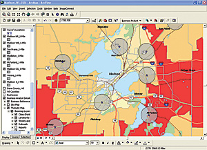Culver's analysts define areas being serviced by existing restaurants by creating locations on a map of their restaurants and using tools within ArcGIS Business Analyst to delineate market area boundaries around sets of customers. Next, Culver's uses the ArcGIS Business Analyst Segmentation Module to mine valuable customer profiling information. Culver's uses the Segmentation Module's Tapestry Segmentation data, which consists of 65 segments broken down by socioeconomic and demographic variables. Operating on the theory that people with similar tastes, lifestyles, and behaviors seek others with the same tastes"like seeks like"Culver's uses these segments to predict where other restaurants can successfully be opened. Using the intuitive wizards, analysts are guided to answer questions about customers, such as, Where are other neighborhoods that look like neighborhoods we are currently in that tend to have higher sales volumes? What do they buy? How can I reach them? and Where can I find more like them? Using these spatial analysis tools, Culver's is able to segment the demographics of a restaurant location and find new areas that have similar attributes. To quickly share this information with corporate managers and new franchisees, the Culver's Real Estate and Franchise Development team uses Business Analyst Online. Business Analyst Online is a Web-based solution that combines GIS technology with extensive demographic, consumer spending, and business data to deliver on-demand analysis and presentation-ready reports and maps. Reports and maps are easy and convenient to use, with more than 50 templates readily available for Culver's analysts to use for presentations to their board members and potential franchisees.