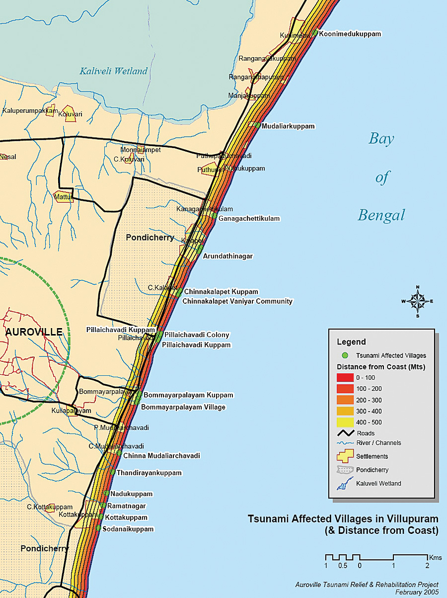 WWF had listed more than 200 ecoregions as globally significant. Identifying these helped direct the efforts of the organization and aided in gaining funding for conservation. Hedao says, "We used GIS to support scientific analysis about regions and bring attention to environmental needs. A map can effectively make a point. It can educate people, define areas of concern, or show best options for conservation." Meanwhile, at Conservation International, Iyer was using GIS in preserving forested areas. She was involved with setting priorities and traveled throughout the world to develop consensus among different stakeholders about environmental needs and policies. Her team supported workshops of scientists and policy makers who considered what regions needed to be preserved because they had the greatest biological importance. Iyer worked on projects in Madagascar, Ghana, C�te d'Ivoire, and Guyana. A variety of maps brought success when securing conservation projects. GIS was used to assess vegetation and locate species. It would be brought to a given country's workshop where scientists and policy makers could visualize ecological data about their country and decide on courses of action. The layering capabilities of GIS provided dramatic insight to the interrelationships of topography, soils, climate, and species. "In most places where we visited, GIS was a relatively new technology," Iyer explains. "We created workshops and materials to help people build databases. Our GIS team used GIS to plot this data onto maps." Their GIS work strengthened the couple's ties with the Esri Conservation Program (ECP) and the Society for Conservation GIS (SCGIS). Between 1999 and 2003, Hedao and Iyer came to work at the company's U.S. headquarters, where they further honed their GIS skills and knowledge of GIS applications. Remaining involved with SCGIS, they participated in fund-raising to bring together scholars from different parts of the world to the annual conferences of Esri and SCGIS. They worked with the program to help people get GIS software and training and acquire hardware, such as laptops and GPS units, that would help them in their local environmental projects. Return to IndiaHaving come to the United States with the intent of eventually returning to their native country, in 2003, at long last, the couple headed home. They settled in Auroville, which has a population of about 1,700 people and is near Puducherry in southern India, not far from the coastline of the Bay of Bengal. Both of them joined the planning office of Auroville and worked toward addressing environmental concerns of Auroville and its bioregion. During this period, they also organized training workshops and seminars, made presentations in different forums on GIS, and conducted specific projects using GIS. In addition to their newfound citizen duties, Hedao and Iyer continued their conservation efforts in the country, participating in a grassland mapping project. Up to this point, the couple had been ensconced in pursuing their interests, but the forces of nature changed the immediate direction of their lives. Disaster StrikesAn undersea earthquake off the coast of Indonesia set off the Indian Ocean tsunami of 2004 that killed more than 225,000 people. Many people living in communities around Auroville lost their lives, and others lost their houses, possessions, and means of making an income. Soils and water sources were inundated with seawater, leaving land worthless and water unusable. Auroville citizens rallied, instantaneously forming relief teams. Soon, these teams came together to form the Auroville Tsunami Relief and Rehabilitation Project. Hedao and Iyer immediately got involved. GIS proved very useful to the project, especially when NGOs and government officials came onto the scene to assist. A familiar-sounding question was raised, "Where should we prioritize our efforts?" GIS provided answers. Maps were used to direct volunteer cleanup work. Using data from the Indian Space Research Organization (ISRO), the GIS team depicted the border of the tsunami inundation line, showing what farms and land parcels were affected and which water sources were most likely contaminated. When it was time to rebuild, the project's focus changed. Accordingly, the Auroville Tsunami Relief and Rehabilitation Project became the Auroville Coastal Development Center. "We provided government officials with criteria to help them choose the best sites for rehabitation," explains Hedao. "Using GIS, we produced maps showing vulnerable areas where building should not occur. They showed areas prone to flooding, low-lying areas, steep slopes, and backwater areas." Unfortunately, conservative government officials were skeptical about the practicality of such criteria that would delay the rehabilitation process and therefore did not pay much attention to the center's rehabitation site selection criteria. Just eight months after the tsunami, the torrential monsoon rains flooded many areas the government had designated for rehabilitation. Realizing the value of GIS for analysis, officials returned to the center seeking help. The center gladly provided it. Hurdles AheadThe Indian government has yet to adopt GIS fully as part of its national disaster response system. The lack or unavailability of geographic data is a hurdle to the development of a nationwide GIS program. In many countries, certain map data is under high security and inaccessible. For India, the lack of data and GIS analysis tools makes it particularly challenging to perform disaster response functions from planning mitigation to assessing damage levels to directing relief activities. Hedao and Iyer are working with their district and state officials, making them aware of GIS and the value of shared information systems. Although the body of work the couple has generated offers indisputable evidence of the benefits of geographic technologies, these two ambassadors of GIS in India still ha