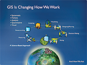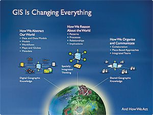 GIS is systematically organizing geographic knowledge into easily shareable information. This sharing of knowledge is changing how we communicate and collaborate. Today, integrated teams and place-based approaches are becoming the standard for complex problem solving.