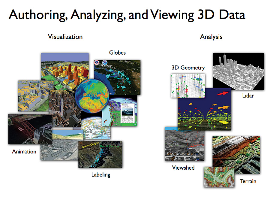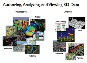 - 3D Visualization and AnalysisAt 9.3, visualization is much faster, smoother, and more accurate and also incorporates geometric analysis tools to perform full 3D analytic operations.